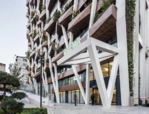 Mental Design Works tarafından hayat ağacının dallarından ilham alınarak tasarlanan cephe strüktürü, binanın ana mimari karakterini oluşturuyor. Bu strüktür sayesinde yeşil doku yalnızca zeminle sınırlı kalmayarak üçüncü boyuta taşınıyor ve yapıyı saran, yaşayan bir kabuğa dönüşüyor. Yapının oturduğu yeşil zemin üst kotlara taşınarak sosyal bir çatı alanı oluşturuluyor ve önündeki park alanı da düzenlenerek çevresiyle bütünleşen kamusal bir alan elde ediliyor.